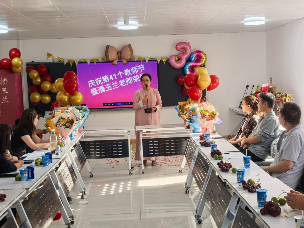 在第41个教师节来临之际,为弘扬尊师重教传统、表达对教育工作者的崇高敬意,广播电视与数字媒体学院于9月9日隆重举办教师节庆祝大会暨潘玉兰老师荣休仪式。学院师生欢聚一堂,共度温馨而难忘的时刻。校工会办公室主任薛新强、校离退休工作处副县级组织员王义伟应邀出席并致辞,向潘玉兰老师致以诚挚的退休祝福。