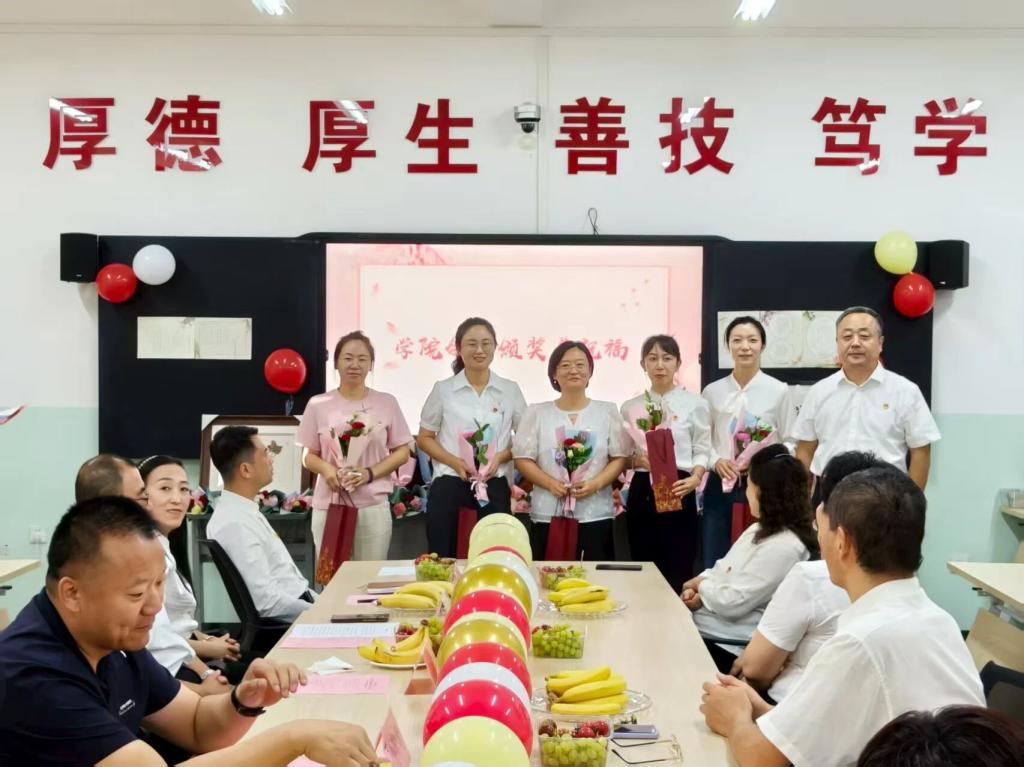 学院领导宣读了前期特别开展的教师书法展与剪影作品展、视频剪辑展等活动中表现优异教师以及为长期扎根教学一线的老教师们的名单,并为他们献上鲜花和诚挚的祝福,并颁发奖品,鲜花与掌声,是对老师们辛勤付出的最好褒奖与祝福。